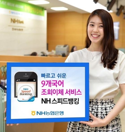 NH스피드뱅킹은 금융거래 사각지대에 있던 다문화가정 및 외국인들이 스마트뱅킹을 통해 편리하게 금융거래를 할 수 있도록 조회·이체서비스 뿐만 아니라 송금 및 환전서비스도 제공한다.