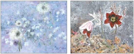 지난 2011년부터 해마다 소풍전에 참여한 이영신 씨는 아크릴 물감을 덧칠해 특유의 질감을 살린 ‘할미꽃 자매’를 내놓았다. 고개를 숙인 한 송이와 환하게 웃는 한 송이에 감정을 이입해 사이좋은 자매의 얼굴을 연상케 한다.