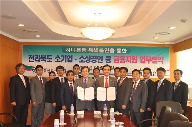 하나은행과 전북신용보증재단(이하 전북신보)은 15일 ‘전라북도 소기업·소상공인 등 금융 지원 업무 협약’을 체결했다.