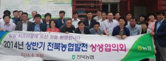 전북농협(본부장 김창수)은 3일 임실치즈마을에서 전북농협 관내 계통사무소의 신용, 경제사업별, 직급별 직원 40여명이 참석한 가운데 ‘2014년 상반기 전북농협발전 상생협의회’를 개최했다.