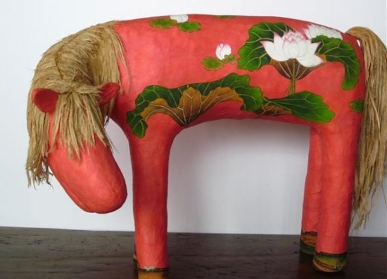 류귀화 작가는 ‘꿈’이라 이름붙인 말로 눈길을 끌었다. 연잎과 연꽃으로 이상향을 상징화한 무늬를 몸 전체가 붉은, 말의 몸에 넣어 시각적인 대비를 이뤘다.