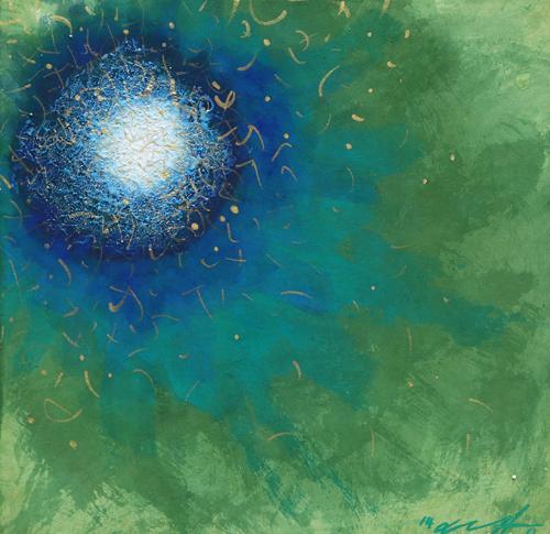 물감의 번짐과 겹침, 색채의 농도와 물의 조화를 이용하여 일정한 형상이 드러나지 않게 작업한다. 화면은 혼란스럽고 불안해 보이지만 그 안에서는 보는 이들로 하여금 상상의 기회를 줄 수 있는‘상상의 여백’을 볼 수 있다. 여백은 혼란해 보이는 화면 속에서도 또 다른 생명 탄생의 경이로움과 평온한 에너지의 평정을 내포하고 있다.