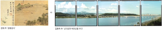 강산무진(江山無盡)은 조선후기의 걸작 이인문의 ‘강산무진도(江山無盡圖)’에서 따왔다. ‘강산무진도’는 춘하추동의 대자연의 경관을 연이어 그린 긴 두루마리 그림으로, 자연과 그 속에서 살아가는 사람들은 생활을 세밀한 필치로 그린 대작으로 평가받고 있다. 김 씨는 또 겸재 정선의 진경산수화를 바탕으로 서울의 풍경을 같은 시선으로 포착한 작품들로 주목을 받았다.