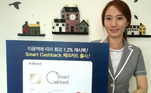 스마트 캐시백 체크카드는 건당 이용 금액 구간에 따라 이용액의 0.2~1.2%를 월 최대 10만원까지 캐시백으로 제공하고, 건당 이용 금액이 커질수록 캐시백 비율도 상승한다.