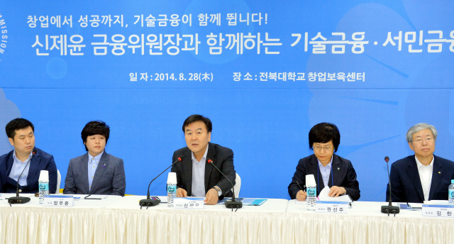 신제윤 금융위원장은 28일 오전 전북대 창업보육센터에서 창업 기업인들과 가진 기술금융 간담회에서 “창업 기업에 자금 제공을 꺼리는 금융기관의 보수적인 영업 관행과 연대보증 등 창업 실패 시 족쇄로 작용하는 제도적인 제약때문에 창업에 애로가 많은 상황”이라 들고 “기술과 아이디어만 있으면 적극적으로 창업할 수 있는 문화를 만들겠다”며 이같이 밝혔다.