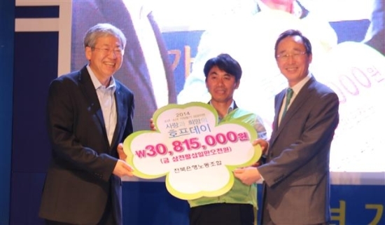 올해로 10회째를 맞은 전북은행 지역사랑봉사단의 이날 행사에서 모금된 3000여 만원의 성금은 송하진 도지사에게 전달됐다.