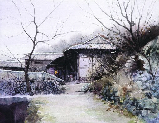 부인 강지우 씨의 작품은 같은 기간 전시장 맞은편 가나 인사아트센터 특별관에서 만날 수 있다. 농촌의 목가적인 풍경을 중심으로 15점의 수채화를 만날 수 있다.