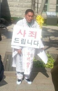 ▲ 8일 남원 농민 노병만 씨가 서울광장을 찾아 세월호 희생자들에게 사죄하고 있다.