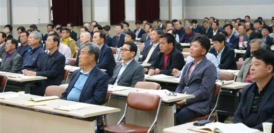 ▲ 15일 농협 전북지역본부 대강당에서 열린 조합장 전국동시선거대비 공명선거 교육에서 입후보 예정자, 현 조합장 등이 강의를 듣고 있다.