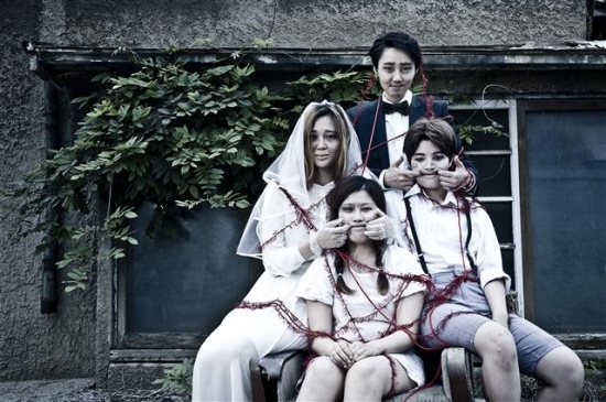 이은지 씨는 ‘가jot(족)’이라는 큰 주제 아래 사진을 찍었다. 그는 가족 사진 속 인물의 화장과 표정을 괴기스럽게 과장했다. ‘행복한 가정’이 위장 또는 설정된 모습으로 허구라는 점을 시각화했다.