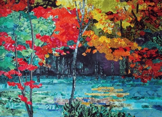 천으로 엮은 풍경화가 가을의 정취를 전한다.