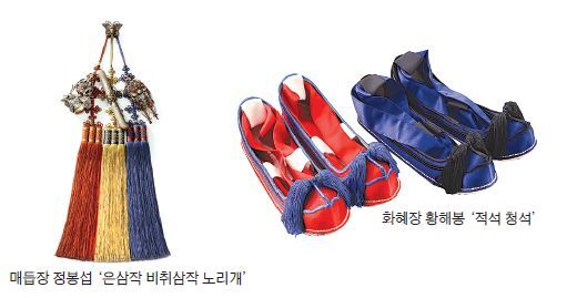 이외에도 중요무형문화재 제102호 고(故)김표영 배첩장이 글씨나 그림에 종이, 비단 등을 붙여 만든 글씨 병풍, 중요무형문화재 제116호 황해봉 화혜장(靴鞋匠)이 제작한 전통 신 적석과 청석, 중요무형문화재 제22호 정봉섭 매듭장의 은삼작노리개와 비취박쥐삼작노리개 등도 전시된다.
