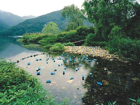 작은 강가에 종이배를 띄우고 그 배가 육지로 떼 지어 가는 모습을 형상화한 사진은 참변을 당한 학생들이 구조되기를 바라는 희망과 바람으로 찍었다.