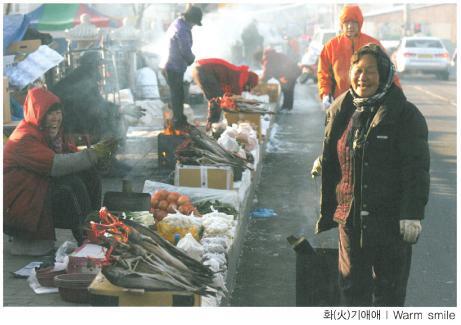 꽁꽁언 시장바닥에 앉아 장사를 하면서도 환하게 웃는 사람들의 모습(화기애애), 애누리하는 손님과 이를 말리는 상인(그값에는 안되아), 시장바닥에 앉아 손에 침을 발라가며 돈을 세고 있는 초로의 할머니(마수) 등 보고 있으면 새벽 장터에 서서 생생한 삶의 현장을 체험하고 있는 착각을 준다.