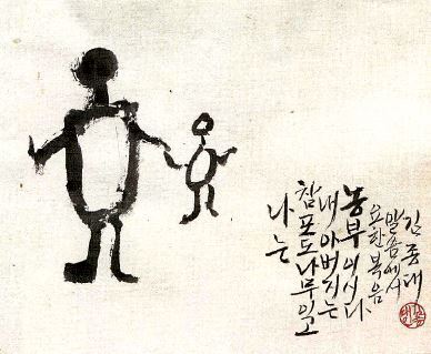 40년 지기인 권윤희 서예가는 수암의 작품이 어디에도 구속됨이 없이 자기 삶을 살아온, ‘자연이연(自然而然, 스스로 그러하여 그러함)’의 삶의 철학에서 나왔다고 보았다. ‘자연이연’이 삶의 철학이라면, 수암이 추구하는 예술은 뜻이 가는 대로 따라가는 ‘수의소적(隨意所適)’이란다.