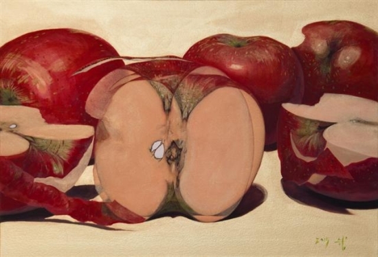 ‘내가 먹다 남긴 사과 반쪽을 바라본다. 먹혀버린 사과 반쪽은 나의 영양분이 되어 사라졌다. 어쩌면 남은 사과 반쪽 역시 복제된 이미지에 불과하지 않을까?’