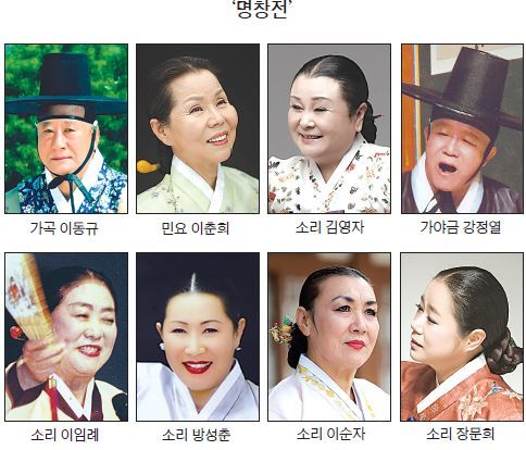 ‘명창전’에는 이동규(중요 무형 문화재 제 30호 가곡 예능 보유자 후보), 이춘희(중요무형문화재 제57호 경기민요 보유자), 김영자(중요무형문화재 제5호 정광수제 수궁가 전승교수), 강정렬(중요무형문화재 제23호 가야금산조 및 병창 예능보유자), 이임례(광주광역시 무형문화재 제14호 강산제(보성소리) 예능보유자), 방성춘(광주광역시 무형문화재 제16호 동초제 춘향가 보유자), 이순자(광주시 무형문화재 제1호 남도판소리 예능보유자) 명창이 초청됐다. 이동규 명창은 남창 가곡 ‘언락’, 이춘희 명창은 경기민요 ‘노랫가락, 창부타령’, 김영자명창은 ‘수궁가 중 토끼 배 가르는 대목’, 강정열 명인은 가야금병창 ‘심청가 중 황성 올라가는 대목’, 이임례·방성춘 이순자명창은 남도민요 ‘육자배기’를 들려준다.