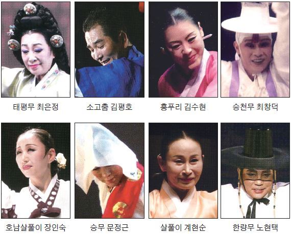 무대에는 전북을 중심으로 왕성하게 춤 작업을 하고 있는 명무 8명이 초대됐다. 중요무형문화재 제92호 보유자인 강선영선생을 사사한 최은정 태평무전수관 호남지부장과 김평호 국수호 디딤무용단 상임안무자, 김수현 도립국악원 무용단장, 최창덕 중요무형문화재 제27호 승무와 제97호 살풀이춤 이수자, 장인숙 전북도 무형문화재 제15호 호남살풀이춤 이수자, 문정근 전북도 무형문화재 제52호 전라삼현 승무 보유자, 계현순 중요무형문화재 제92호 태평무 이수자, 노현택 전북도립국악원 무용교수가 제자들과 무대에 선다.