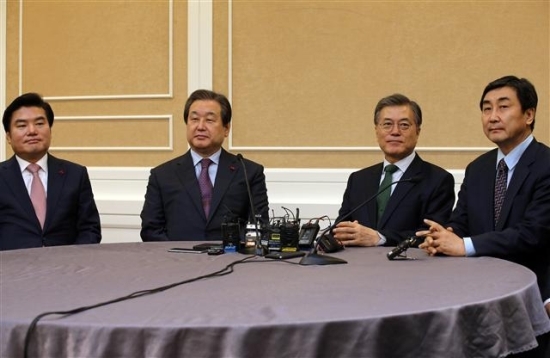 새누리당 김무성·새정치민주연합 문재인 대표와 양당 원유철·이종걸 원내대표는 지난 12일 국회에서 만나 선거구 획정과 관련한 쟁점을 놓고 약 2시간 동안 비공개 협상을 진행했으나 절충점을 찾지 못했다.