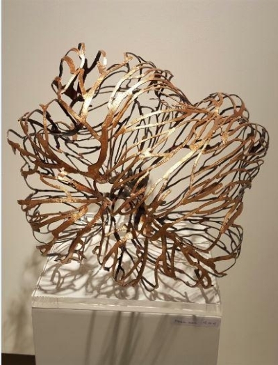 시멘트를 큰 덩어리로 만드는 작업을 해왔던 박재연 작가는 구리로 만든 선들이 자유롭게 엉킨듯한 설치 작품을 선보인다. 작품 내부를 꽉 채웠던 기존 작품과 달리 공간을 비웠다.