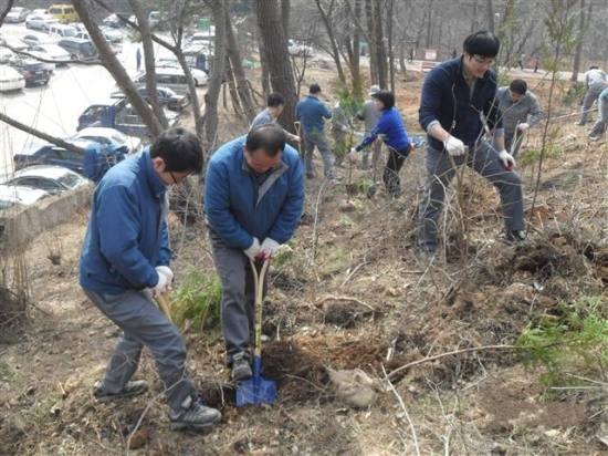 페이퍼코리아 임직원 100여명은 지난 16일 월명공원 청소년 수련원 입구에서 임직원 여명이 참여한 가운데 1000만원 상당의 편백나무 500그루를 심었다.