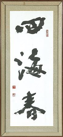 ‘생각이 바름으로 마음에 사악함이 없다’는 뜻을 담은 작품 ‘사무사(思無邪)’는 세로길이가 약 3미터에 달한다. 서예작품 ‘사해춘(四海春)’은 ‘온 세상이 봄’이라는 의미로 요즘 계절과 잘 어울리는 작품이다.