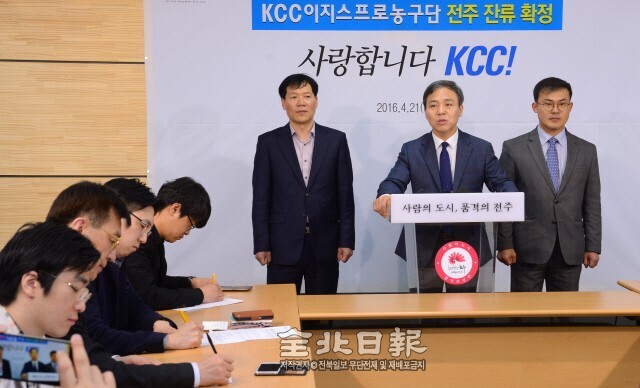 KCC 이지스 측은 이날 김 시장의 기자회견이 끝난 뒤 누리집에 연고지 이전과 관련한 입장을 통해 전주 잔류 결정 사실을 밝혔다.