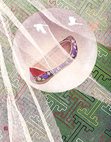 이와 더불어 아련한 그리움을 불러일으키는 추억에 대한 표상을 넣었는데, 주로 등장하는 것은 꽃신이다. 그는 “시집가는 날 부모님께 받았을 법한 꽃신에는 곱게 싸두었던 꽃신의 먼지를 털며 몇 년 만에 친정 나들이를 간다는 설레임, 또는 헤어짐 등 다양한 기억이 공존한다”며 “꽃신을 통해 정서적, 심리적 요인에 나타나는 감정과 감성의 흐름을 더했다”고 덧붙였다.