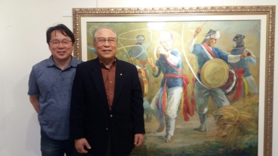 ‘농악’의 신명을 화폭에 담아온 홍순무 원로작가. 선생이 스물한번째 개인전을 아들 웅표씨와 함께하고 있다. 3년 여만에 전시를 열면서 같은 길을 걷는 아들과 함께 하고픈 마음에 먼저 제안했다. 아버지는 뿌듯함이 앞섰지만 아들은 부담이 컸다고 털어놓았다.