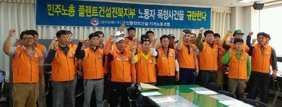 군산플랜트건설기계 노동조합은 8일 군산시청 브리핑룸에서 기자회견을 통해 “이번 폭행사건에 대해 민주노총 플랜트건설 전북지부는 공개사과하고 폭행 가담자를 즉각 제명 처리하라”고 주장했다.