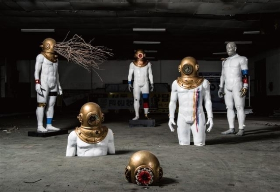 이번 전시에도 작가 내면에서 키우는 꿈꾸는 자들을 선보인다. 흙으로 섬세하게 형상을 만든 후 본을 뜨고, 다시 FRP(섬유강화플라스틱)를 바르는 고된 작업을 이어오면서도 희망을 놓지 않았다. 얼굴에 잠수부 마스크를 씌워 표정을 숨겨버린 ‘꿈꾸는 자들’은 작가만의 영웅적 상징물. 다부진 체격에 표정이 없는 그들에게 꽃과 나뭇가지로 희망을 심어놓았다. 작가는 “현대사회는 사회적 약자가 더 많고 희망을 이야기하기에 더욱 어려워지고 있지만 그래서 더욱 역설적으로 희망을 이야기하고 싶었다”고 말했다. 돈키호테는 듬직한 영웅으로, 늙은 당나귀인 로시난테는 늠름한 말로 재해석했다.