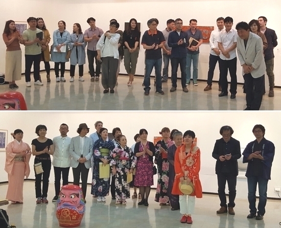 개막식에서는 정장과 기모노를 차려 입은 일본 작가들이 70여명의 축하객을 맞았다. 일본 측이 직접 초대한 한·일 전통 무용가들의 공연과 김세미 명창의 공연도 펼쳐졌다. 일본 마에노 스이슈와 오페 제임스, 하시모토 쇼이치 작가는 양국 교류전을 기념해 교류가 활성화 되길 바라는 마음을 담아 전시 작품을 기증했다.