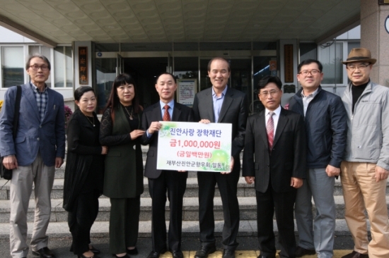 재부산 진안군향우회(회장 김수열)가 지난해에 이어 올해도 장학금을 기탁했다. 진안사랑장학재단(이사장 진안군수)은 지역 우수 인재에게 다양한 장학사업을 펼치고 있는 법인이다. 재단은 장학금을 지급하는 것 말고도 해외역사탐방을 등을 추진하고 있다. 재단이 재부산진안군향우회로부터 기탁받은 금액은 100만 원.