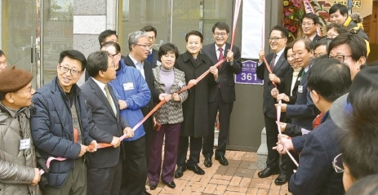 ▲ 26일 국민의당 전북도당 사무실 이전 개소식과 박근혜 퇴진운동본부 결성식이 열린 도당 사무실 앞에서 박지원 비상대책위원장과 국회의원 등 당 관계자들이 현판식을 갖고 있다. 사진제공 =국민의당 전북도당