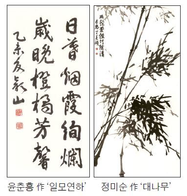 윤춘흥 씨의 ‘입덕천행당’, ‘일모연하’, ‘이것 또한 지나가리라’ 등 서예· 서각작품 44점과 정미순 씨의 ‘대나무’, ‘화정분인담’, ‘난초의 기’ 등 문인화 작품 28이 전시됐다.