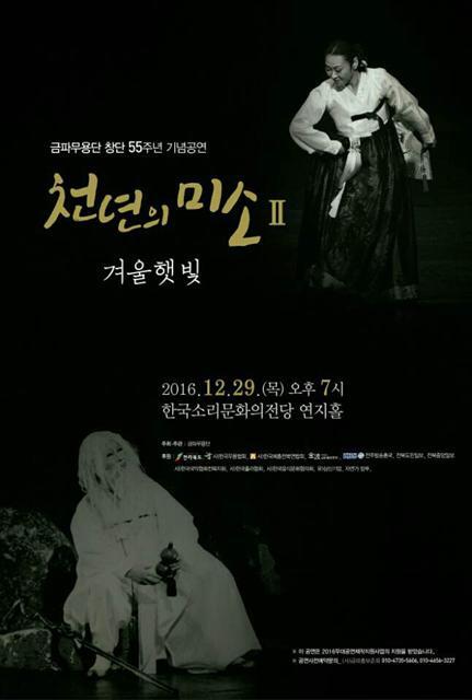 창단 55주년을 맞은 금파무용단이 오는 29일 한국소리문화의전당 연지홀에서 ‘천년의 미소Ⅱ-겨울햇빛’ 주제로 공연을 펼친다. 금파무용단은 지난 2007년 12월 27일 한국 전통춤의 원형을 바탕으로 창작 춤의 확장을 위해 ‘천년의 미소’를 제작한 바 있다.