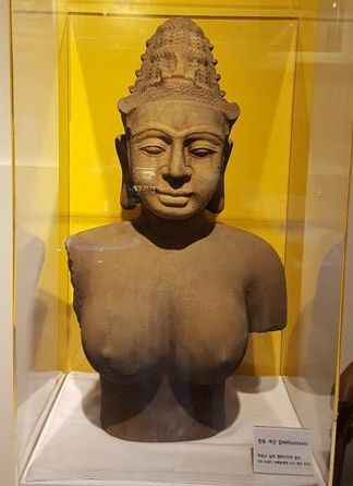 특히 라오스 남부 팜파삭지역에서 출토된 조각 작품 ‘힌두 여신 압싸라’는 10~12세기 크메르제국 시기에 제작된 것으로 추정되는 연구 가치가 높은 고미술품이다. 그는 “라오스는 불교문화지만 당시 힌두문화였던 크메르 제국이 라오스 남부를 지배했던 시기가 있었다”면서 “정부의 공식 반출 허가를 받기까지 1년 이상 걸릴만큼 그 당시 시대·사회를 반영하는 중요한 작품이지만 한국에 라오스 역사·문화를 알리기 위해 가져왔다”고 말했다. 전시는 한 전 부지사의 소장품을 일정기간 교체해가며 선보인다.