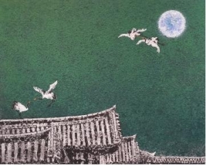 한옥 위에 있는 학의 모습은 같이 있어 사랑하고 같은 곳을 바라볼 수 있어 행복한 동행의 날갯짓이다. 동행, 배웅, 이별, 마중, 포옹, 사랑 등을 표현한 그림들 속에서 화가는 삶과 가족을 담고자 하는 ‘꿈꾸는 달’의 이야기를 펼쳐낸다.
