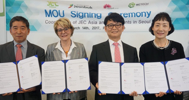 전주시는 지난 14일 프랑스 파리 국제컨벤션센터에서 열린 ‘2017 JEC World Composite Show(이하 제크쇼)’에서 주최 측인 프랑스 JEC그룹과 아시아 박람회 공동개최를 위한 업무협약을 맺었다.