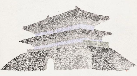 <훈민정음> 서문을 써 완성한 ‘숭례문’과 이탈리아어로 단테의 <신곡> 의 일부를 써 형상화한 ‘피사의 사탑’이 그 예다. 신곡> 훈민정음>