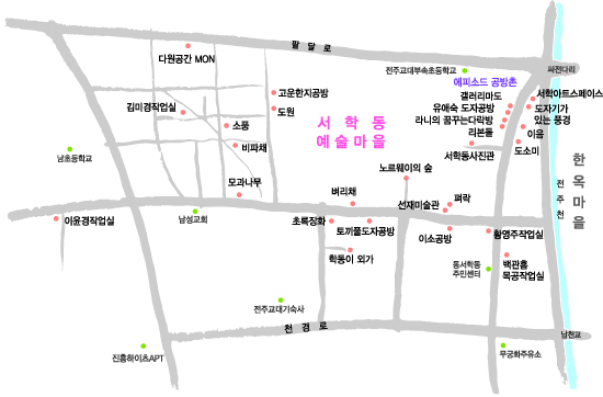 지역 상권이 쇠퇴하고 주거시설이 낙후되면서 쇠락한 구도심이 된 서학동 일대. 지난 2010년부터 전주 한옥마을과 동문거리에서 작업하던 일부 작가들이 한옥마을 상업화에 밀려 하나둘 옮겨오기 시작했다. 현재는 공방, 인문학 서점 등 40여 명의 예술인들이 거주하는 ‘예술마을’이 됐다.