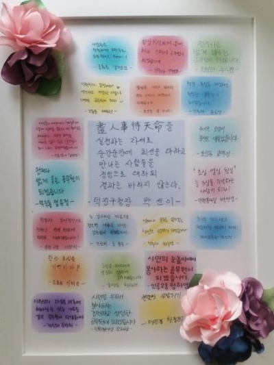 박 구청장은 ‘초심액자’에 ‘초심·열심·뒷심 늘 3심을 기억하는 사람이 되자!’는 글을 담았고, 새내기 공무원들은 ‘민원인의 마음을 비추며 헤아릴 수 있는 가로등 같은 공무원이 되겠습니다’ 등의 패기와 재치가 넘치는 글귀를 적은 것으로 전해졌다.