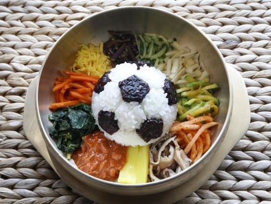 전주시는 18일 전주비빔밥을 응용한 축구비빔밥 모양틀을 제작, 향토음식점으로 지정된 전주비빔밥 업소에 전달했다고 밝혔다. 축구비빔밥은 놋그릇 가장자리에 둥그렇게 고명을 깔고, 그 한가운데에 안전한 소재로 만들어진 축구공 모양틀의 식품위생용기로 축구공 모양을 낸 밥이 올려진 형태다.