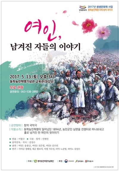 동학농민혁명기념재단이 13일 오후 3시 정읍시 동학농민혁명기념관 교육관에서 창작 국악극 ‘여인, 남겨진 자들의 이야기’를 선보인다.