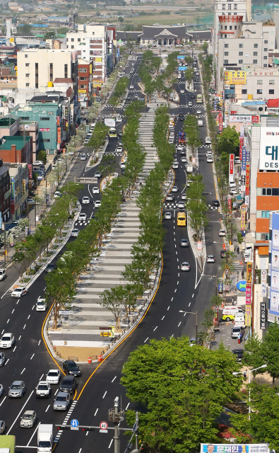 예전 같으면 왕복 8차선 대로 중앙의 양 방향 1·2차로로 자동차들이 씽씽 달리던 길이었을 공간에 깔끔한 인도가 조성됐고, 그 한 가운데 서 있는 느낌은 사뭇 새로웠다.