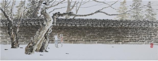 그래서 그의 한국화를 보면 아늑함과 희망이 느껴진다. 화면에 등장하는 소재들은 평화로워 보인다. 작품에 담긴 눈, 바람, 공기, 달빛, 고요함 등은 삶의 가치와 희망적인 가능성을 내포하고 있다.