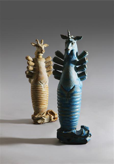 이명순 현대도예가(군산대 교수)가 12일까지 전주 교동아트미술관에서 ‘Semi-Human, Semi-Animal’ 연작으로 개인전을 갖는다. 그는 인간의 희로애락 등 일상적인 모습을 비유적으로 표현한다. 그리고 현대인의 다양한 양태를 인간과 동물을 형태적으로 결합한다. 인체의 추상적, 기하학적 모습을 기반으로 해체와 결합을 반복하면서 새로운 형상을 만들어내는 것이다.