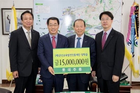 롯데주류 이종훈 대표가 15일 군산지역 인재육성에 써달라며 장학금 1500만원을 군산교육발전진흥재단(이사장 문동신)에 기탁했다.