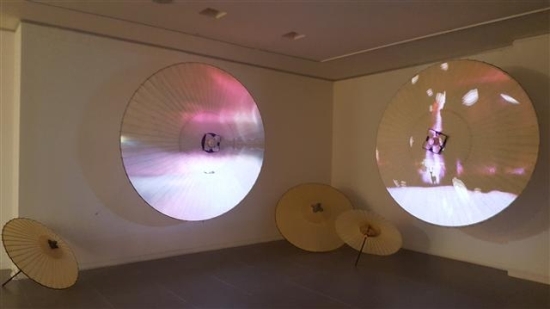 미디어 아티스트인 탁영환 작가는 오랫동안 스크린에 대한 연구를 했다. “본질은 빛과 빛을 받는 대상의 관계”라는 탁 작가는 주로 건물 외벽에 영상을 트는 ‘미디어파사드’를 실내로 들여왔다. 15일까지 전주 갤러리 숨에서 열리는 개인전 ‘우중산책’은 윤규상 전북도 무형문화재 우산장이 만든 대형 지우산을 스크린 삼아 그가 제작한 영상을 상영한다.