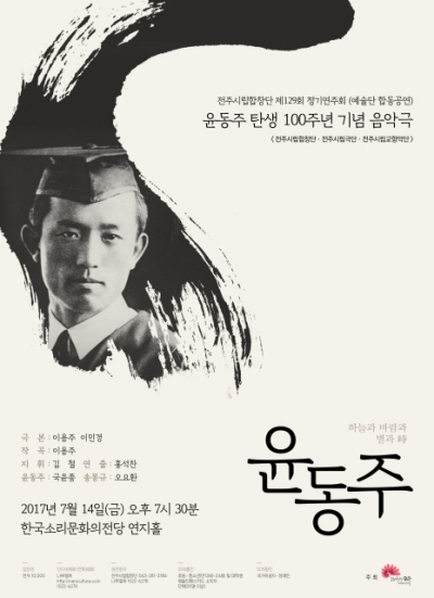 김철 전주시립합창단 상임지휘자가 총감독과 지휘, 홍석찬 전주시립극단 상임연출이 연출을 맡았다. 윤동주 역은 테너 국윤종, 송몽규 역은 바리톤 오요환이 소화한다. 전 좌석 1만 원. 문의 063-281-2786.